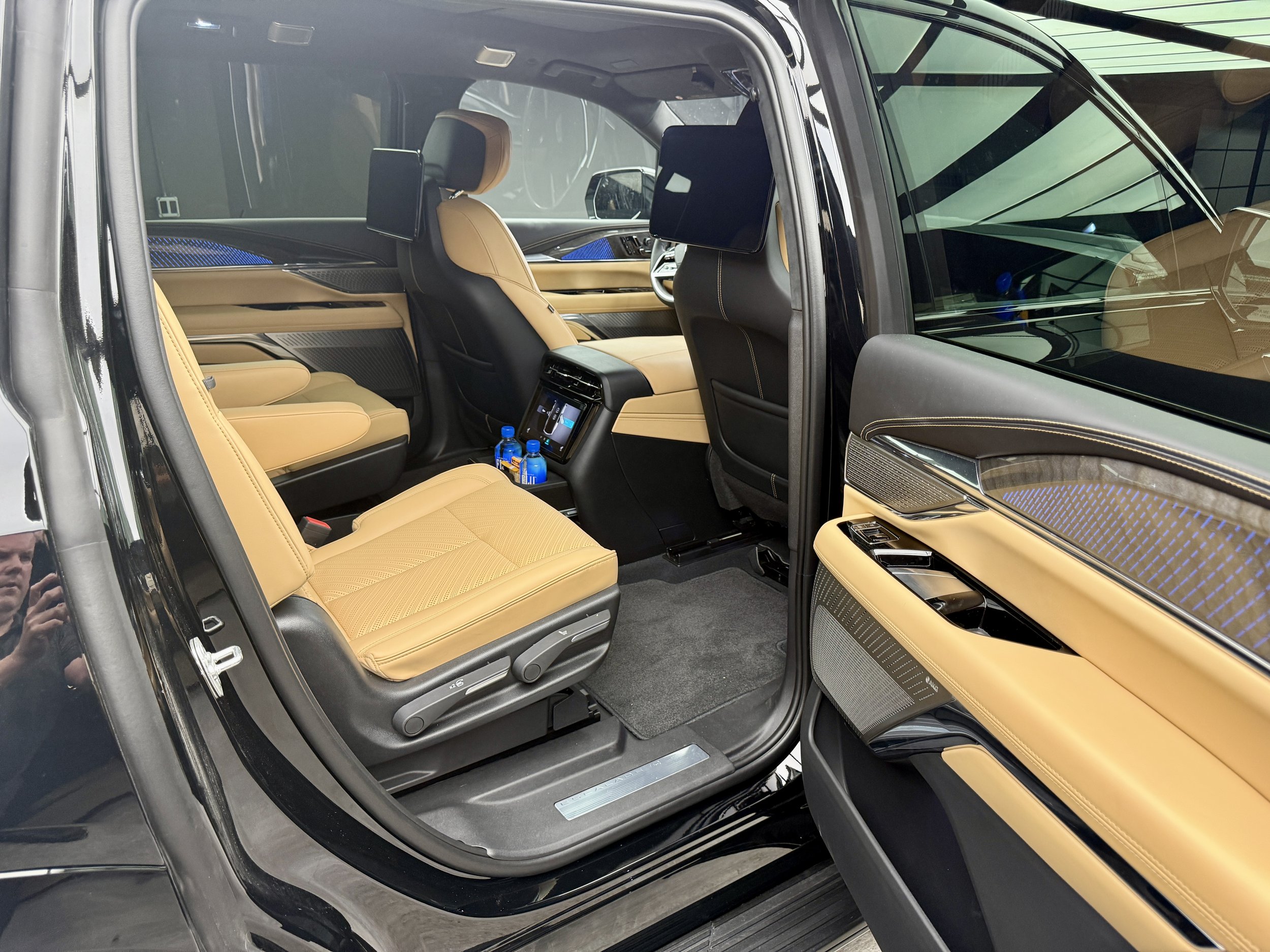 Executive Second-Row Entertainment – Dual 12.6″ rear-seat touchscreen displays offering streaming media, screen mirroring, and multimedia control